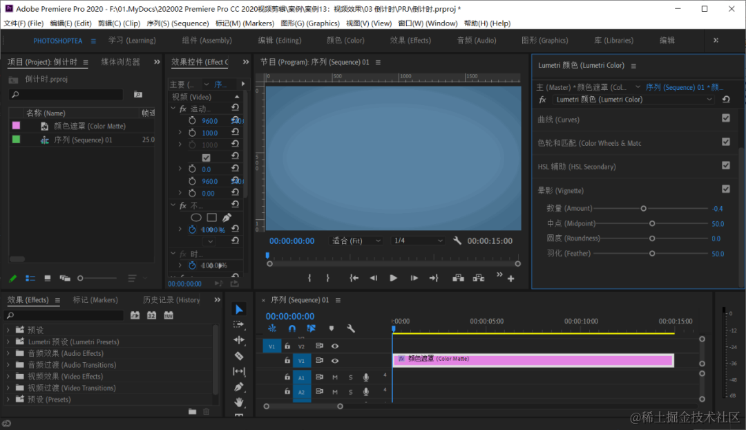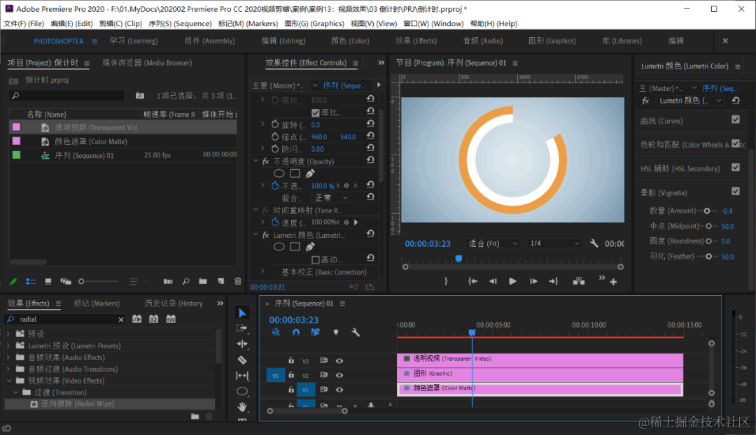 本文主要介绍使用Adobe Premiere Pro制作倒计时效果视频。其中第一步创建背景图层,如果不想了解建立晕影的方法,可以跳过并使用其它剪辑作为背景图层。