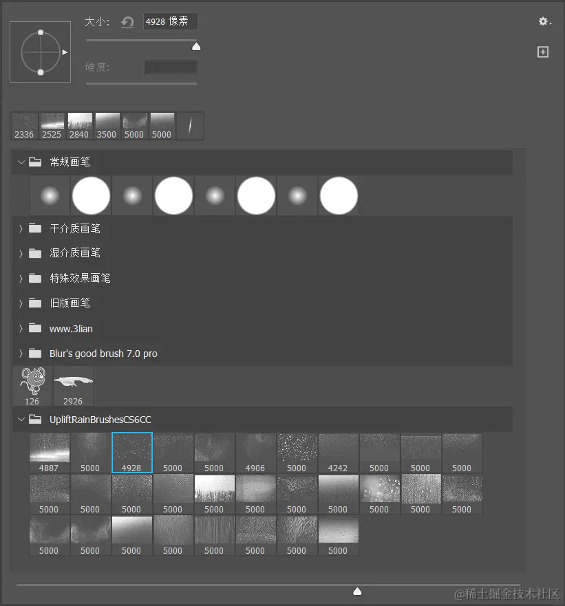 网上下载第三方下雨效果笔刷进行绘制。
