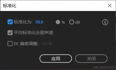 提示:要应用RMS标准化,请选择Au菜单:效果/匹配音量。如果需要,也可以将该命令仅应用到一个文件。