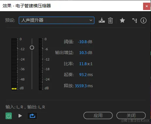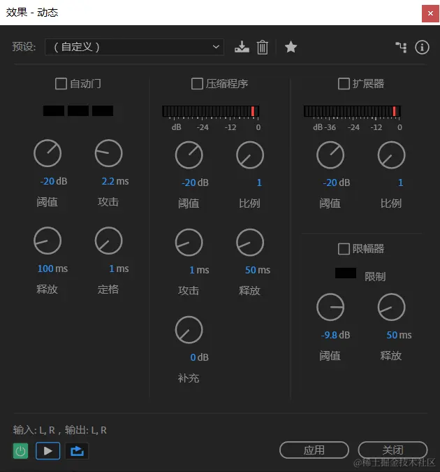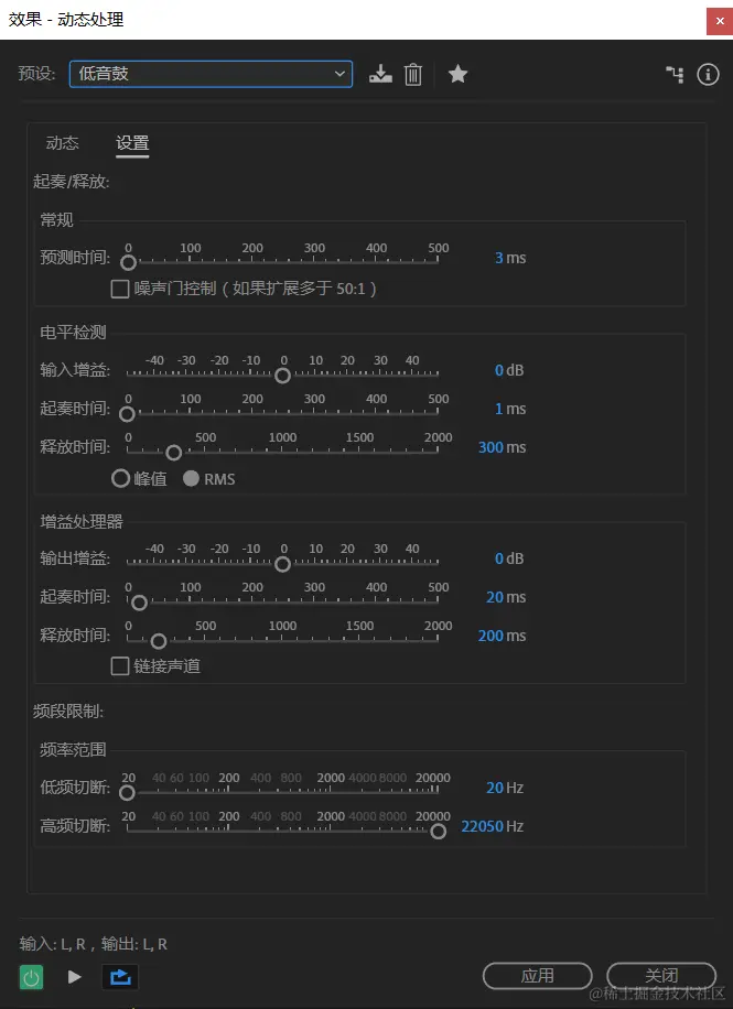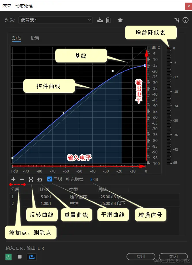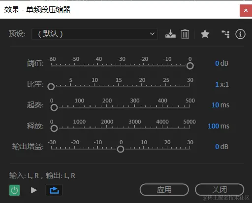 比例 Ratio:压缩比,用于控制动态范围中的更改。