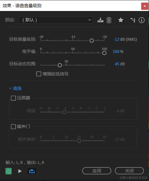 本效果是优化对话的压缩效果,可平均音量和去除背景噪声。