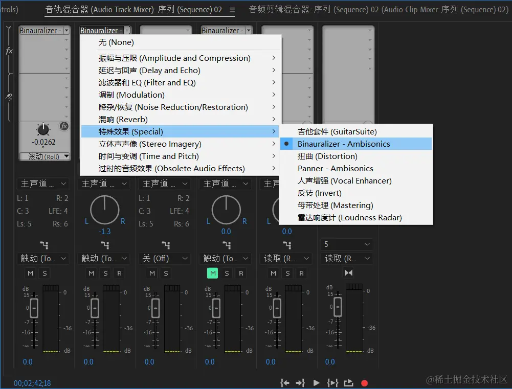 多声道模拟立体声,又称为环境立体声(Ambisonics),与全景视频组合起来,创造一种身临其境的体验。即,在Pr中,不仅可以按照方向或位置来编辑音频,还可以将其导出为多声道模拟立体声音频。