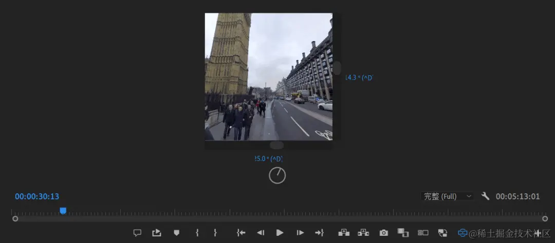 对视频剪辑应用“视频效果/沉浸式视频/VR 投影”效果。使用“平移、倾斜、滚动”等旋转VR视频到某一位置。然后对音频应用“音频效果/特殊效果/Panner - Ambisonics”效果,设置“平移、倾斜、滚动”与VR投影效果中的对应参数一致。
