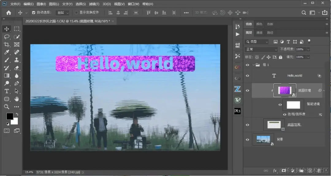 提示:按住 Shift 键选中文字图层与底图图层,按 Ctrl/Cmd + G 编组;或者,新建一个图层组,然后将相关图层拖入组内。