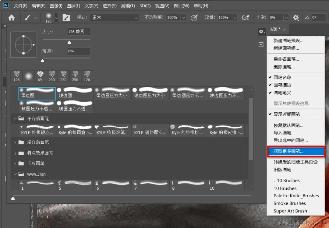 如上图点击“获取更多画笔”,将打开官方画笔预设网站。