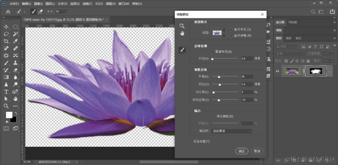 按 Ctrl/Cmd 键点击Alpha通道,回到图层面板,新建图层蒙版。