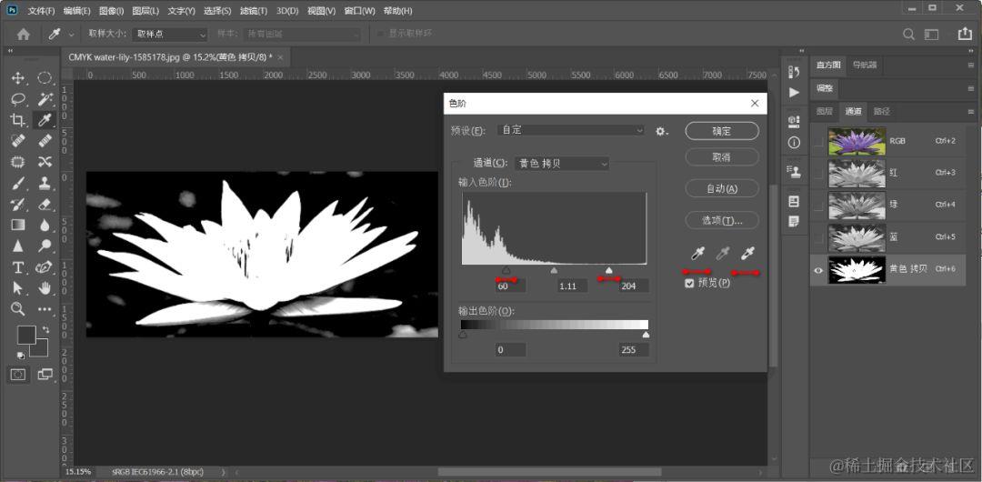 (1)一般移动黑色滑块和白色滑块来加大反差的程度;