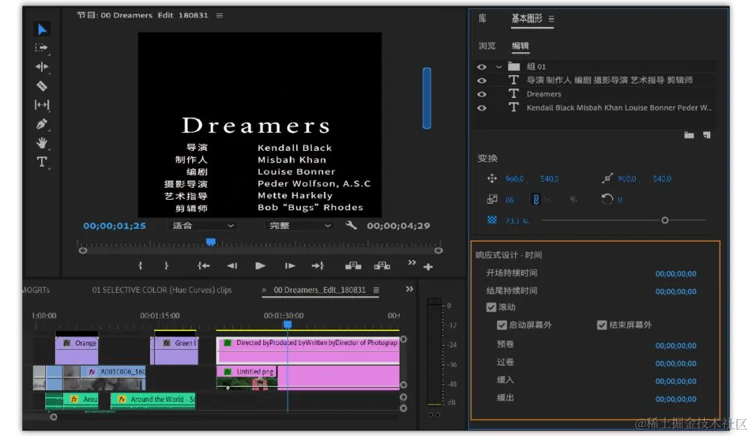 Premiere Pro响应式设计主要分为两类:时间和位置。
