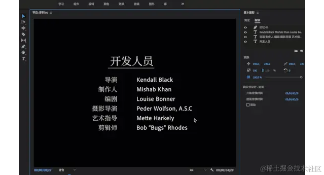 (2)希望使用基本图形面板来制作片尾滚动字幕;