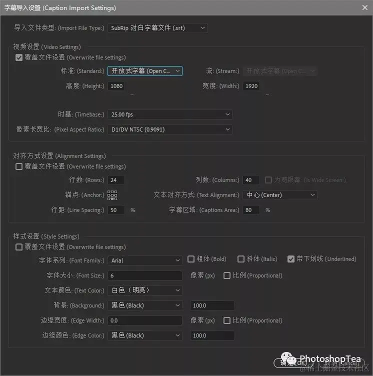 开放字幕在 Premiere Pro 中也是属于隐藏字幕。