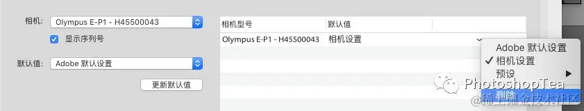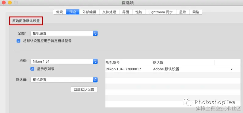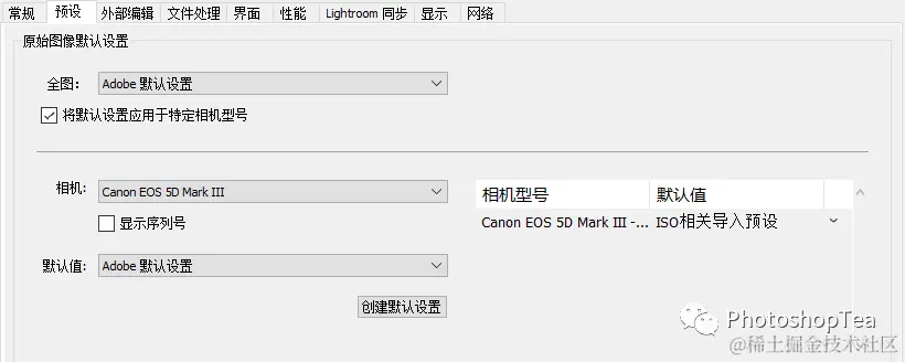 Adobe默认设置: 选择此选项将对Raw格式照片应用Adobe默认设置。