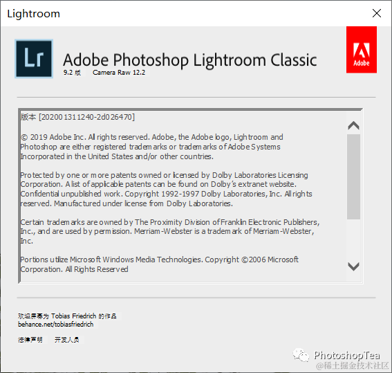 Lightroom Classic 2020年2月版(版本 9.2),对应Adobe Camera Raw的版本 12.2 。