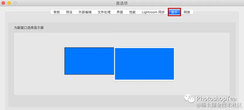 在首选项的显示选项卡,可以为副窗口选择一个显示器。