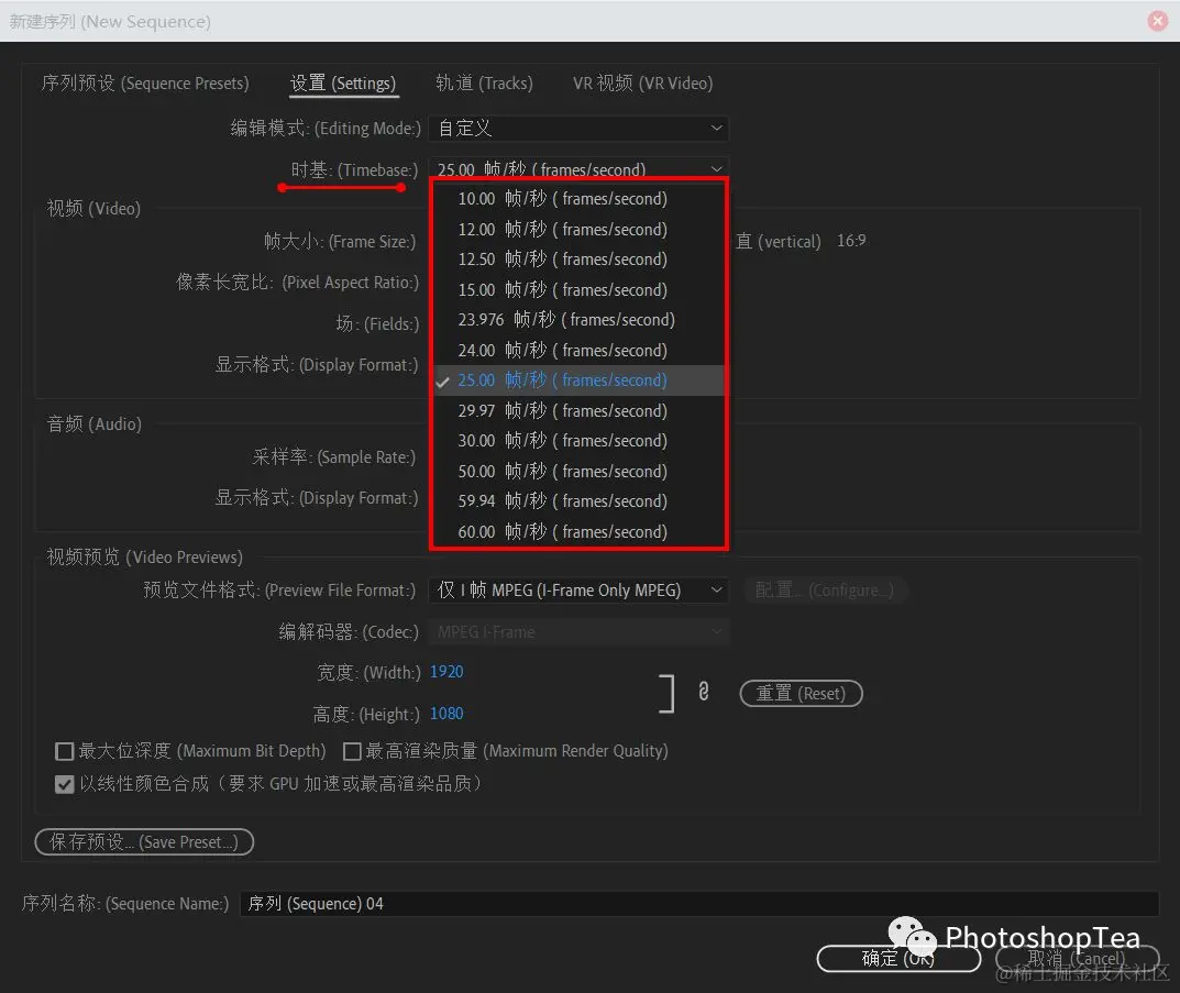 无论是抽帧还是补帧,这个要转换为的基准速率(如我国常用的25fps),在一些视频剪辑软件如 Premiere Pro 中称为时基(Timebase)。