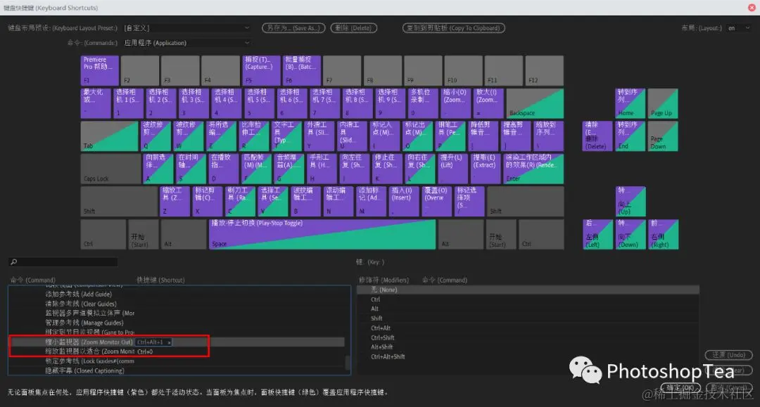 另处还可以为自己的常用操作添加自定义快捷键,Pr菜单:编辑/快捷键。