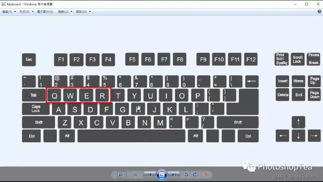 注意: 快捷键Q、W、E、R在键盘上是排列在一起的。\