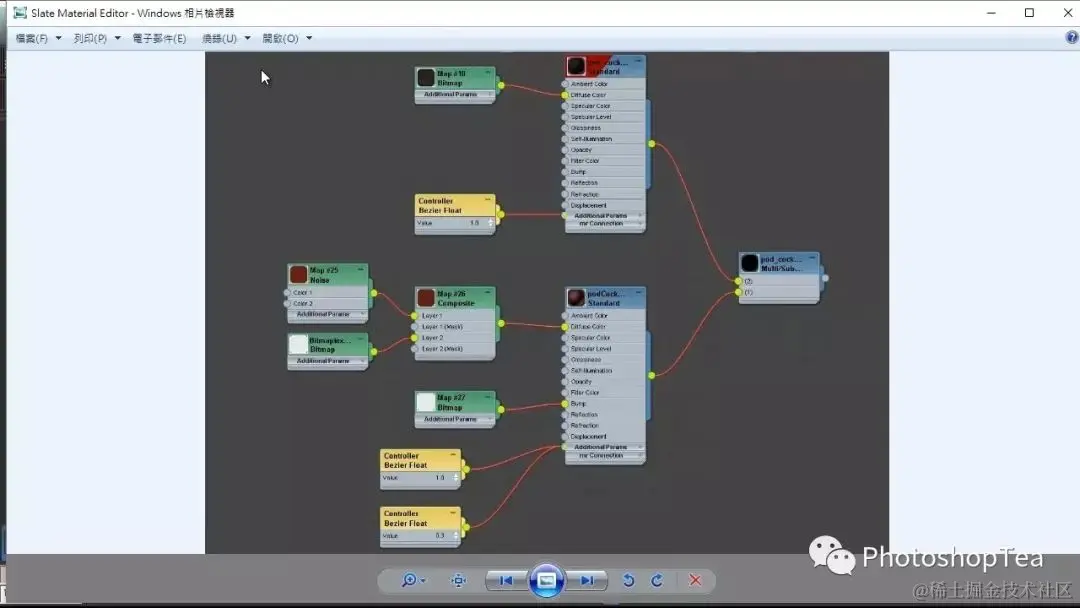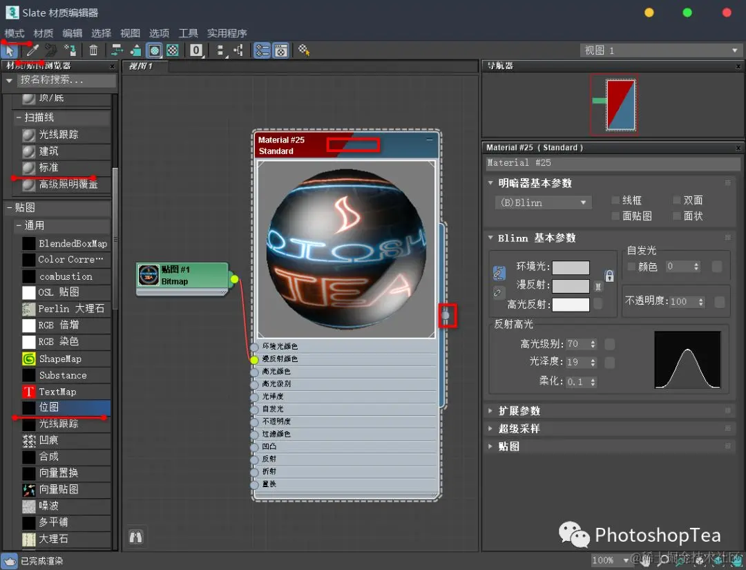 按M键打开材质编辑器。先建立“标准”扫描线材质,再拖入贴图(如“位图”),将贴图链接到材质的“漫反射”。将材质链接到对象模型后,再点击“预览”按览,即可看到贴图在对象上的显示。