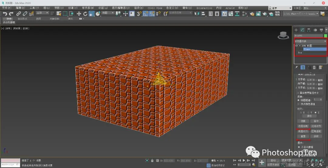 一般情况下,某个对象模型有其自己的贴图方式而不管贴图图片的长宽比。所以,常常需要重新指定贴图的方式。常用的有修改面板修改器列表中的UVW 贴图修改器。