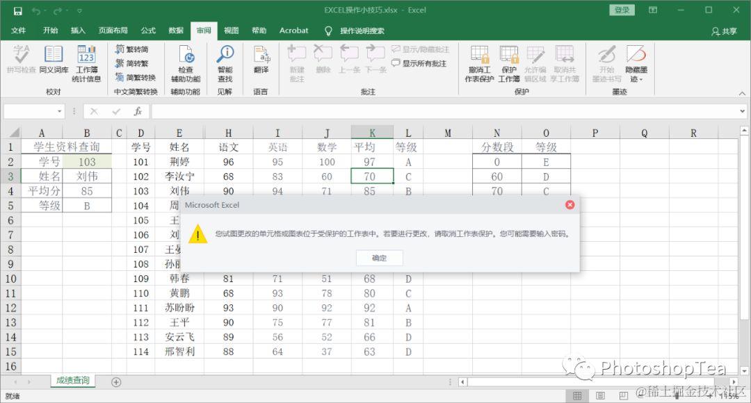 工作表被保护之后,没有密码的使用者就不能修改表中那些未开放数据了。