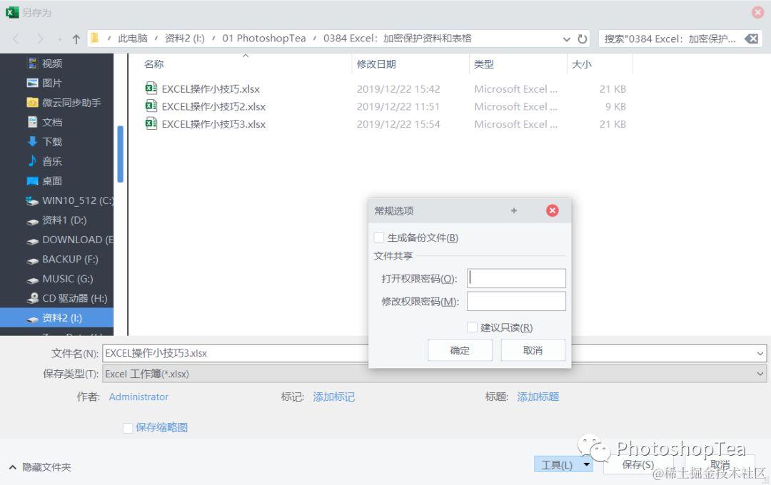 点开“文件选项卡 /另存为”,在 “另存为” 对话框的右下角选择“常规选项”。