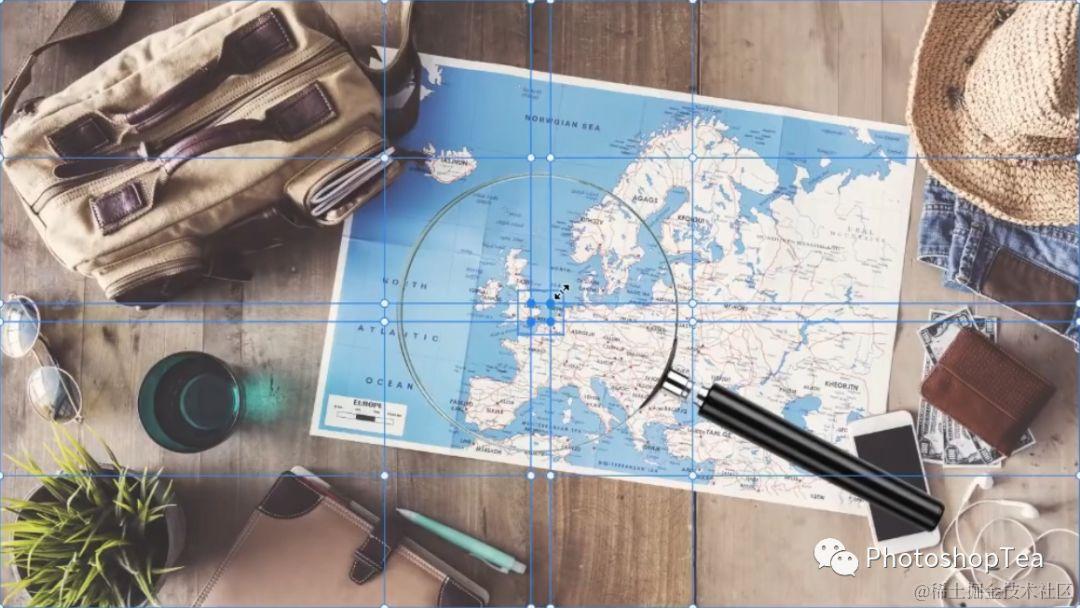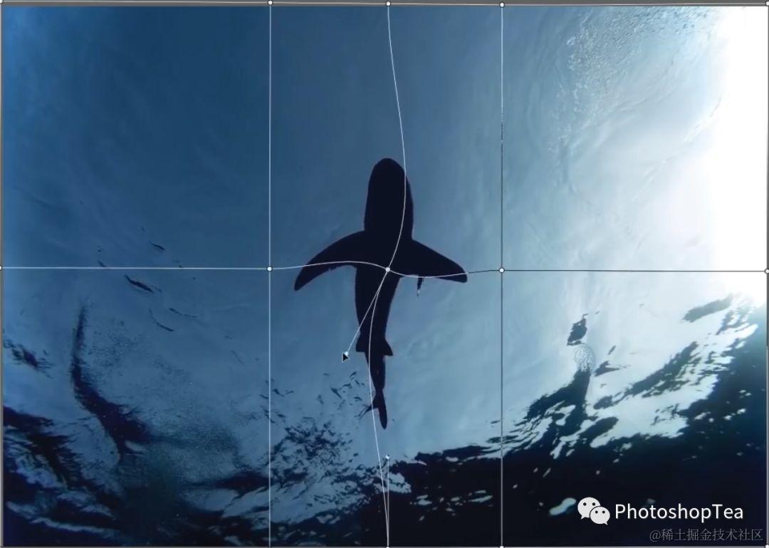 进入变形之后,可轻松地移动控制点变形图像。在选项栏中,网格有默认值、3 x 3、4 x 4、5 x 5等固定版面可供选择。默认值为单一矩形网格,3 x 3 是之前PS版本的格式。