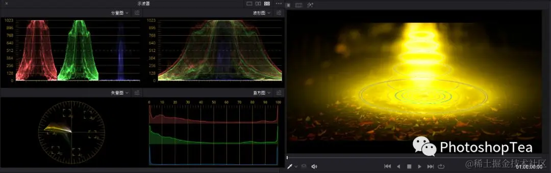 此时,唯一能相信的就是:影像示波器。影像示波器会真实反映影像的明暗关系或色彩关系。一开始看这些东西的时候会感觉崩溃,那是因为我们不知道如何解读。其实并没有想像的那么难。读懂了这些影像示波器,我们就可以摆脱“只能目测”的瓶颈。