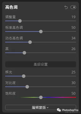 说明:往右滑,得到低饱和高对比的图像效果。