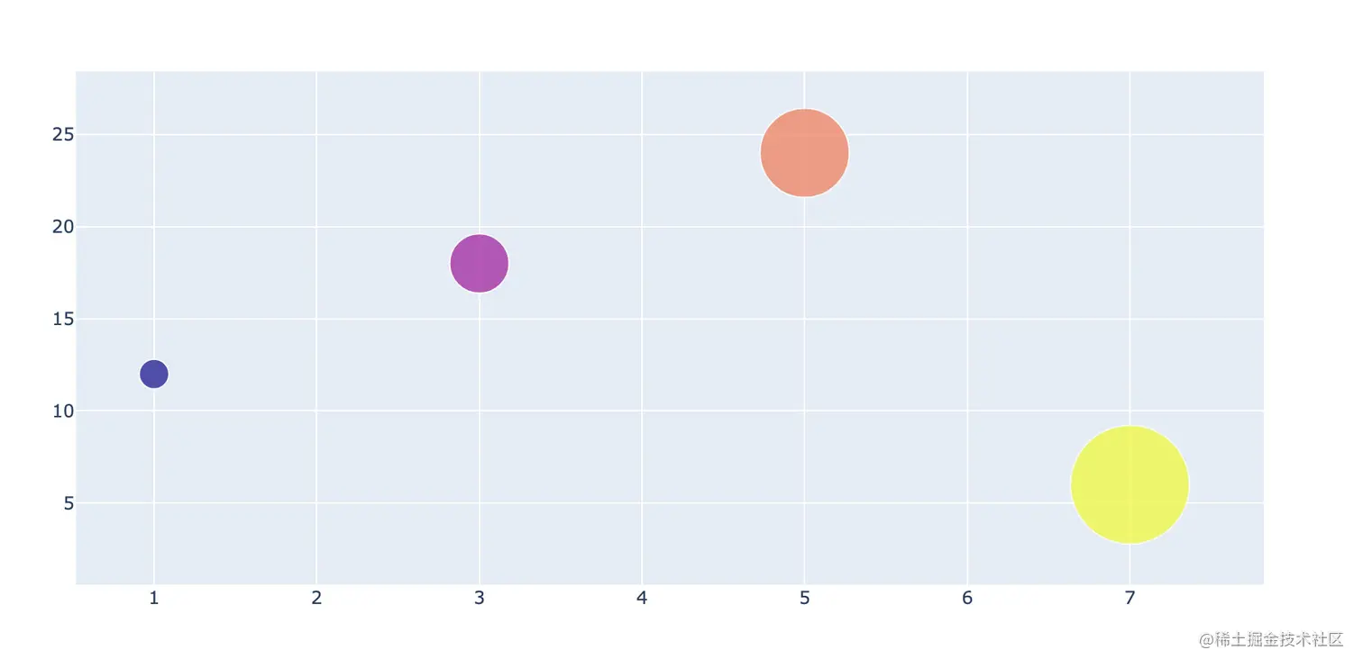 marker=dict(size=[20,40,60,80], # marker是字典形式的数据