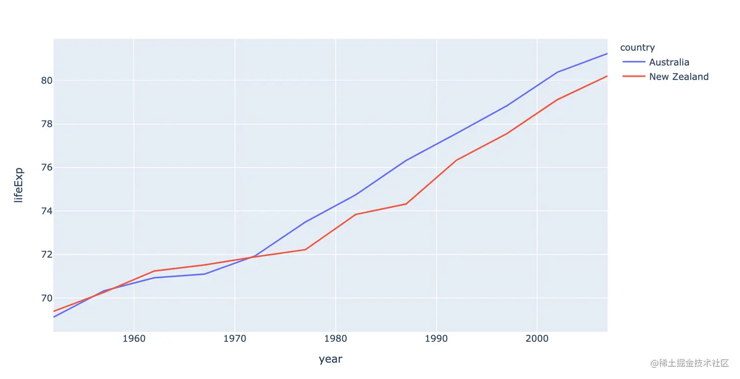 gapm = px.data.gapminder().query("continent == 'Oceania'")