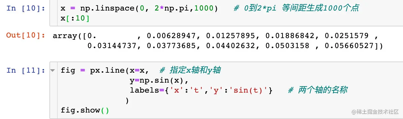 t = np.linspace(0, 10, 30) # 0-10之间随机生成50个数字