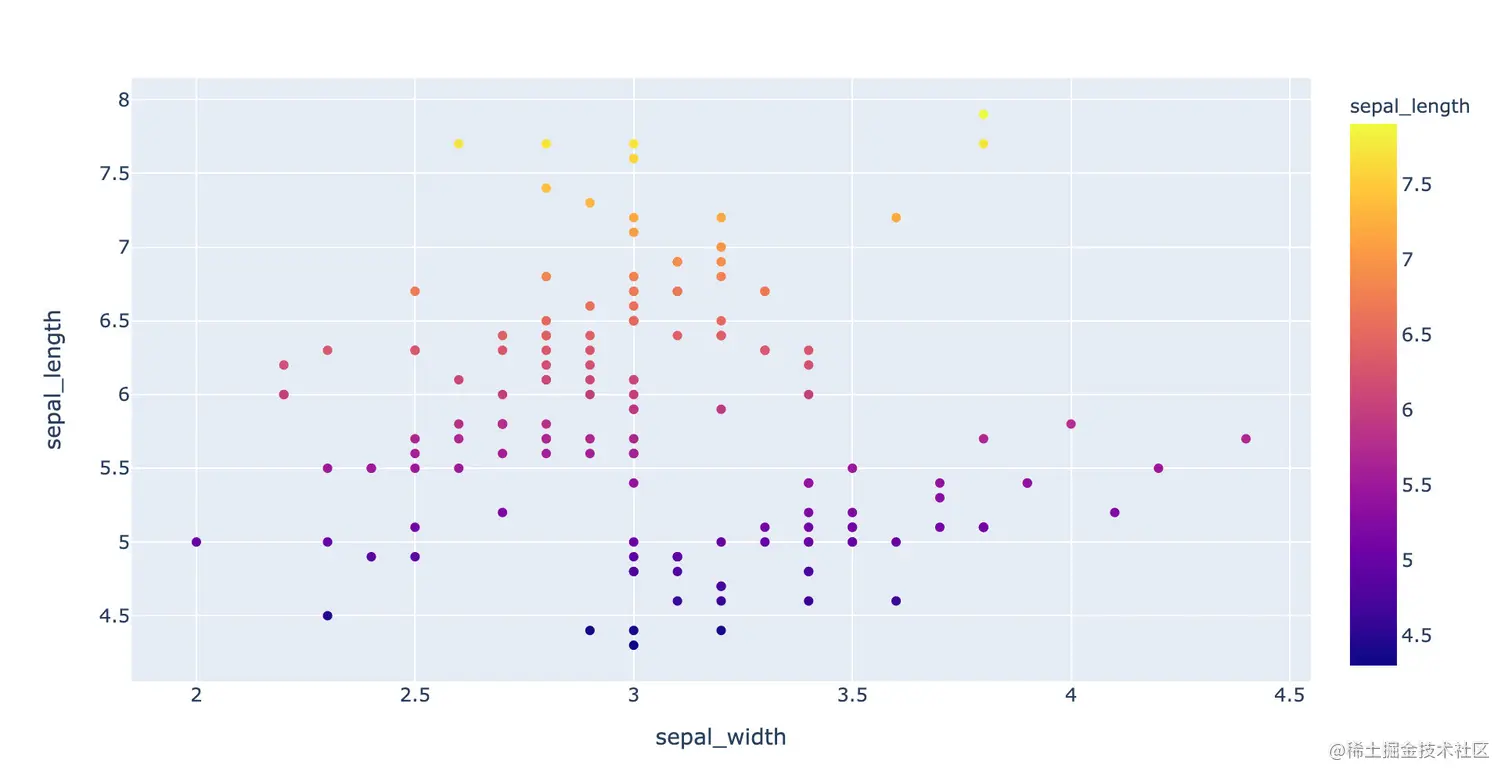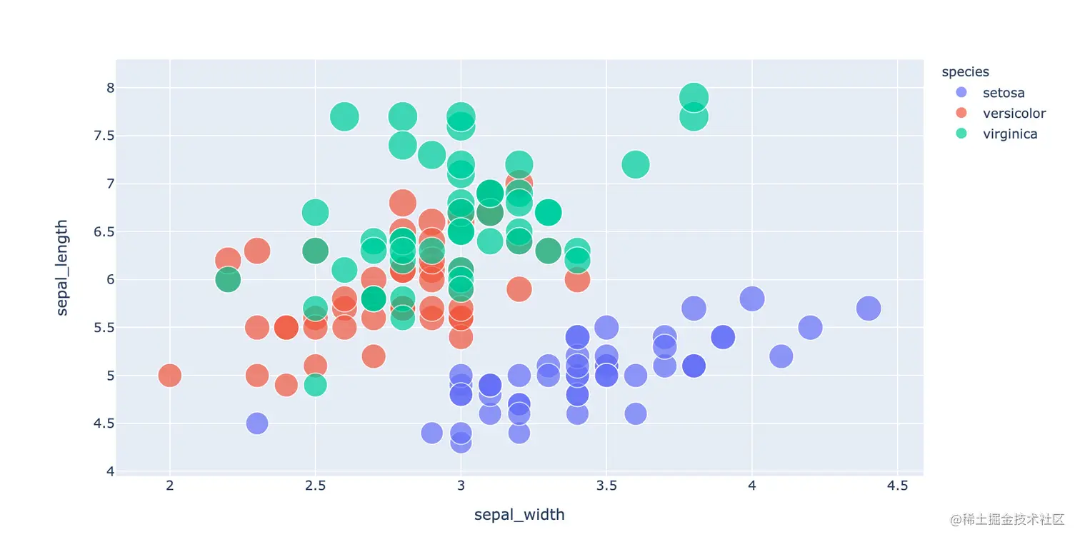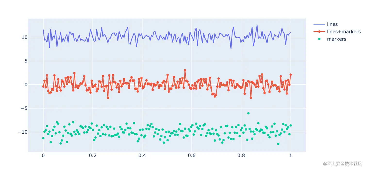 上面介绍的都是基于px来绘制散点图,下面介绍的是如何利用go.Scatter绘制散点图: