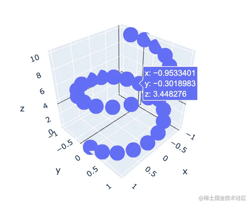 x, y, z = np.cos(t), np.sin(t), t # 设置3个变量