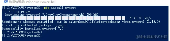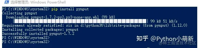 PS C:\WINDOWS\system32> pip install pynput Collecting pynput