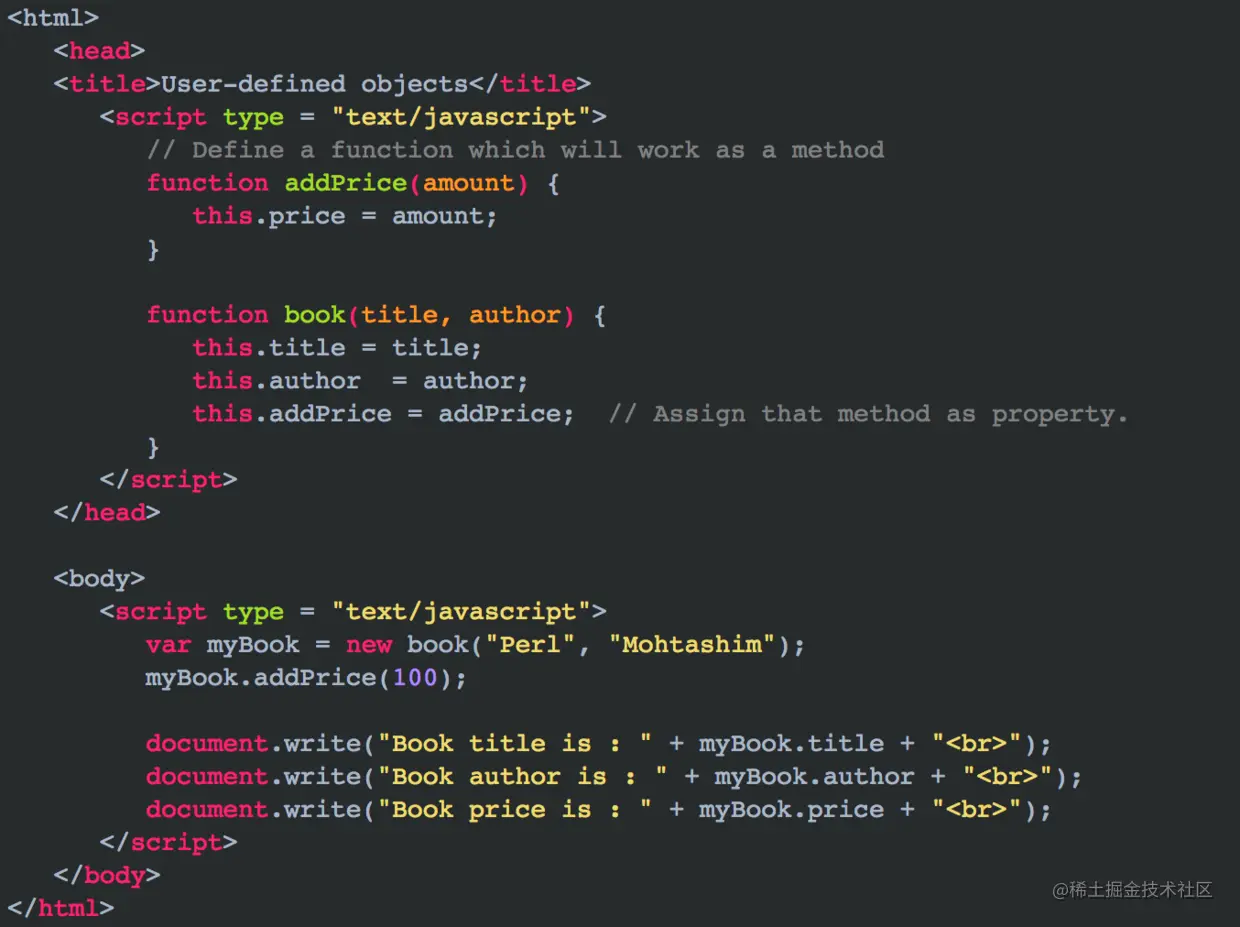 方法是让对象做某事或让某事做完的功能。函数和方法之间存在细微差别:函数是一个独立的语句单元,一个方法附加到一个对象,可以通过this关键字引用。