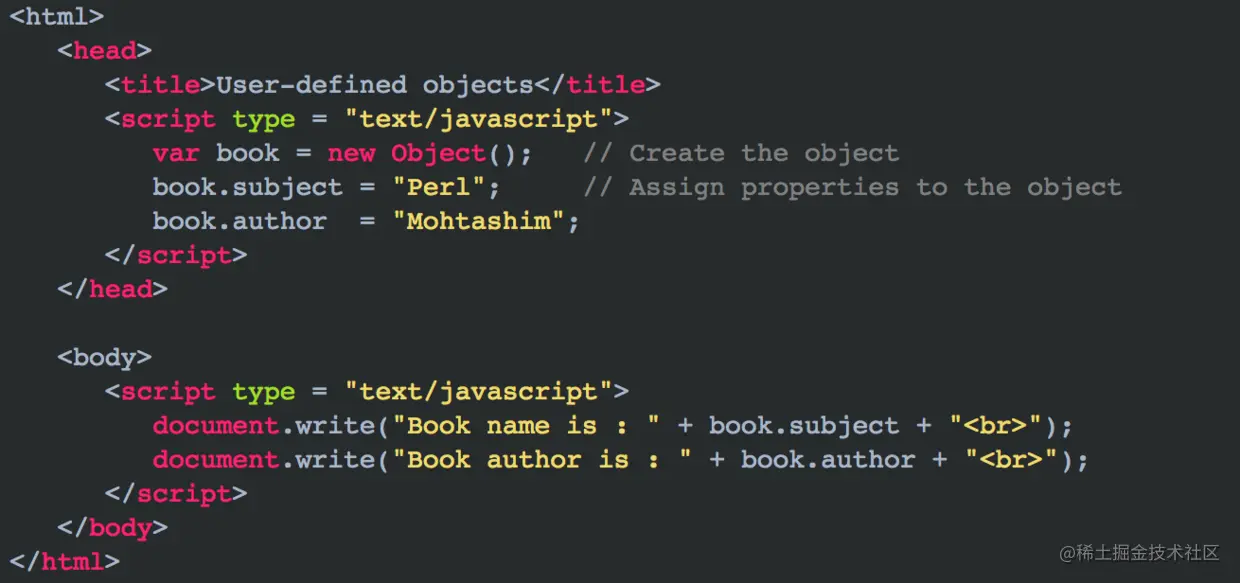 构造函数是一个创建和初始化对象的函数。JavaScript提供了一个名为Object()的特殊构造函数来构建对象。Object()构造函数的返回值分配给变量。该变量包含对新对象的引用。