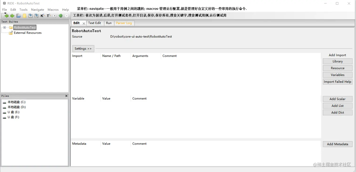 robotframework(4)-ride的介绍 红毛丹 2021-04-07 411 阅读1分钟 (1)ride启动 有两种方式,一种是通过命令行方式 mac: python3 ride.py 需要在ride.py所在的目录执行 windows: ride.py, 因为已经加到环境变量里,可以在cmd直接运行 另外一种方式是通过图形化界面快捷方式 (2)ride界面