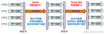Serial/Serial Old组合收集器运行示意图如下: