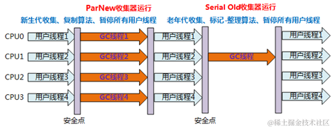 ParNew/Serial Old组合收集器运行示意图如下: