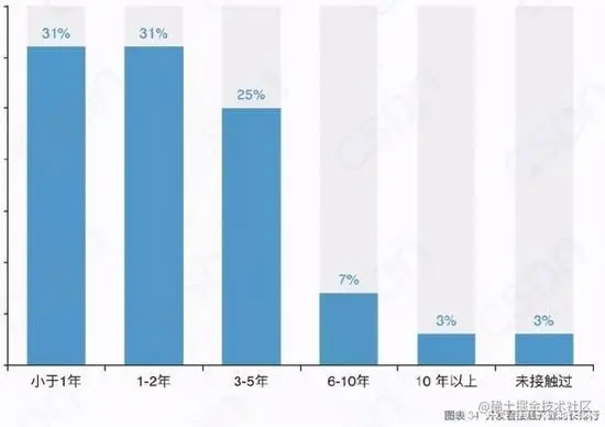 大趋势下,越来越多的人开始接触开源,近一年开始接触开源的人占比超过三成。
