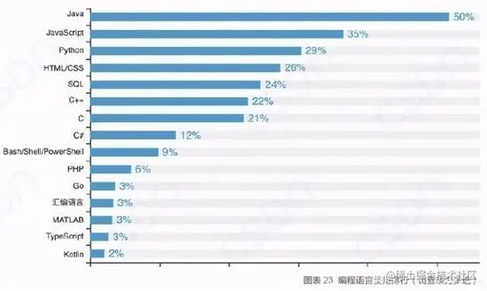 另外python在人工智能的发展和语言本身简洁的优势下,逐步提升用户量,Python开发者数量占比近3成,已经常居于榜单前三。