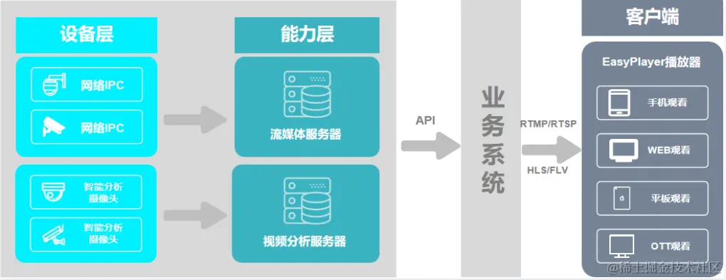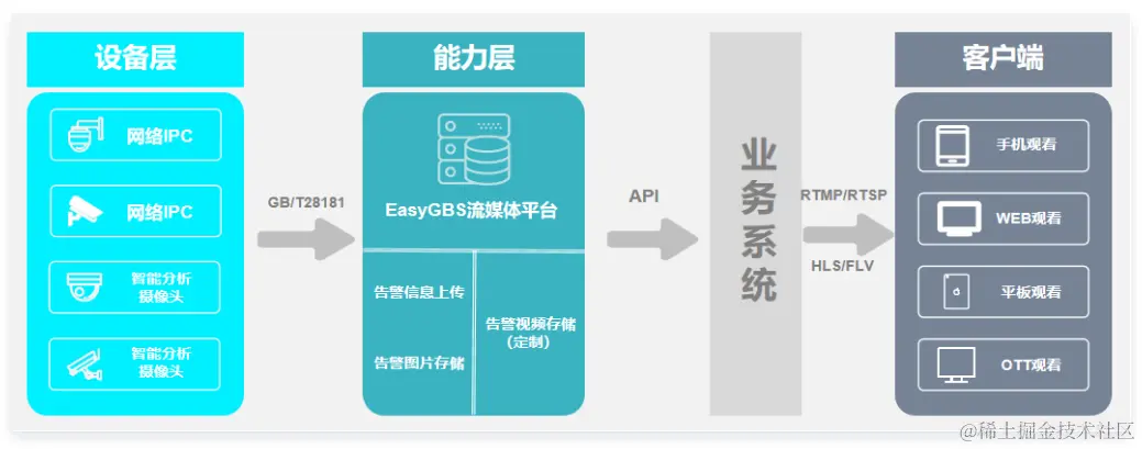 但这种情况下,普通的监控摄像头还需要进行实时的视频监控,也就是还需要搭配一套流媒体服务器,进行视频流的接入与分发,这个成本及运营商都比较重,是否可以将智能分析监控摄像头与传统安防摄像头接入同一套流媒体服务器,同步进行实时视频、分析数据的聚合,出入口仅需要一套流媒体服务器。