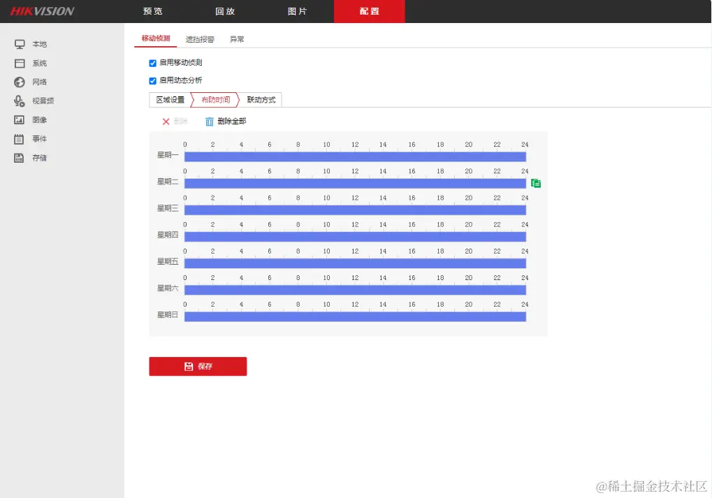 第二步:设置移动侦测的布防时间
