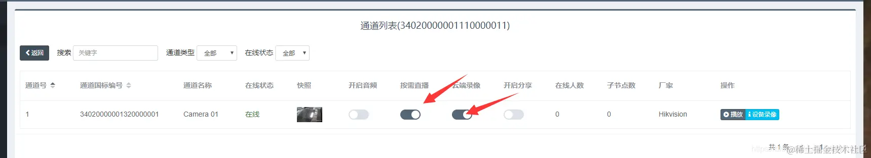 配置 按需直播 关闭,云端录像 开启,LiveGBS支持录像循环覆盖,无需担心录像占满存储
