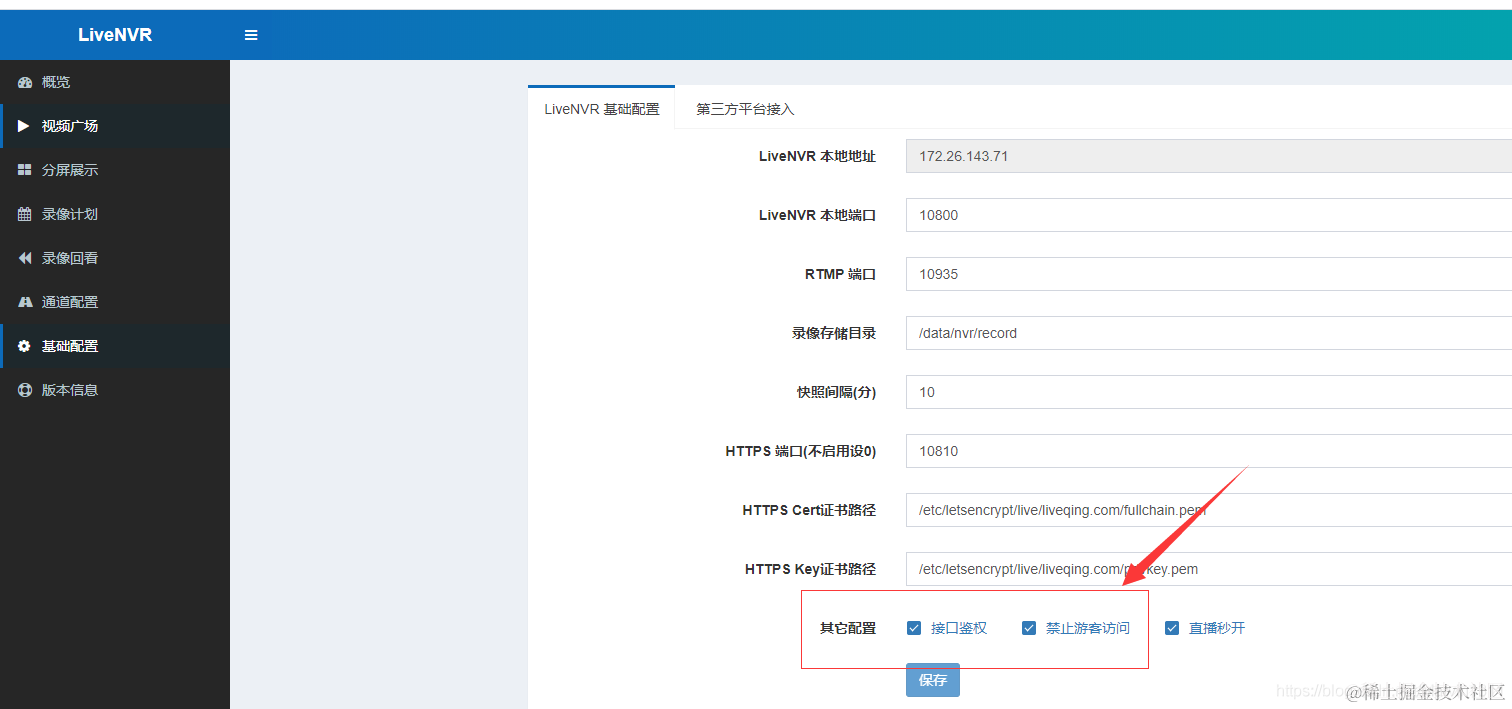 LiveNVR Onvif/RTSP、RTMP拉流直播流媒体中禁止游客登录 penggy吴 2021-04-07 207 阅读1分钟 Onvif|RTSP流媒体服务 搭建入口,解压启动即用:www.liveqing.com/docs/downlo… 接口鉴权、禁止游客访问 LiveNVR->基础配置->LiveNVR基础配置