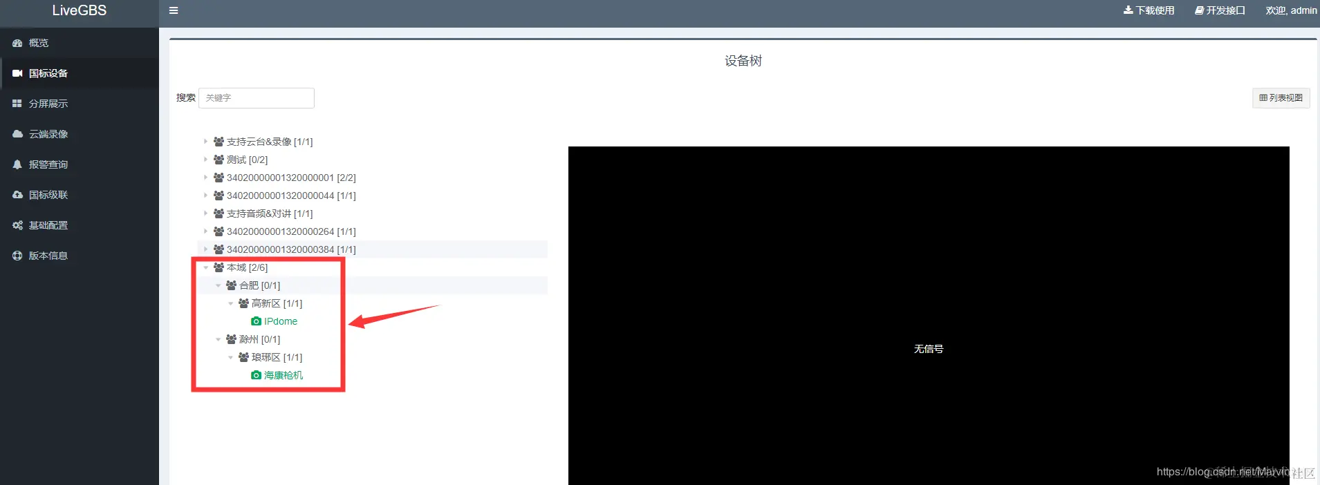 通过LiveGBS实现GB28181平台级联时自定义目录组织结构 penggy吴 2021-04-07 188 阅读1分钟 GB28181流媒体服务 具体介绍这边不多说,参考 www.liveqing.com/docs/produc… 进入树视图 编辑本域 自定义逻辑组织节点 前面一致,中间是216,后面自定义 效果展示 编辑国标级联就可以选择自定义的组织树向上级联了