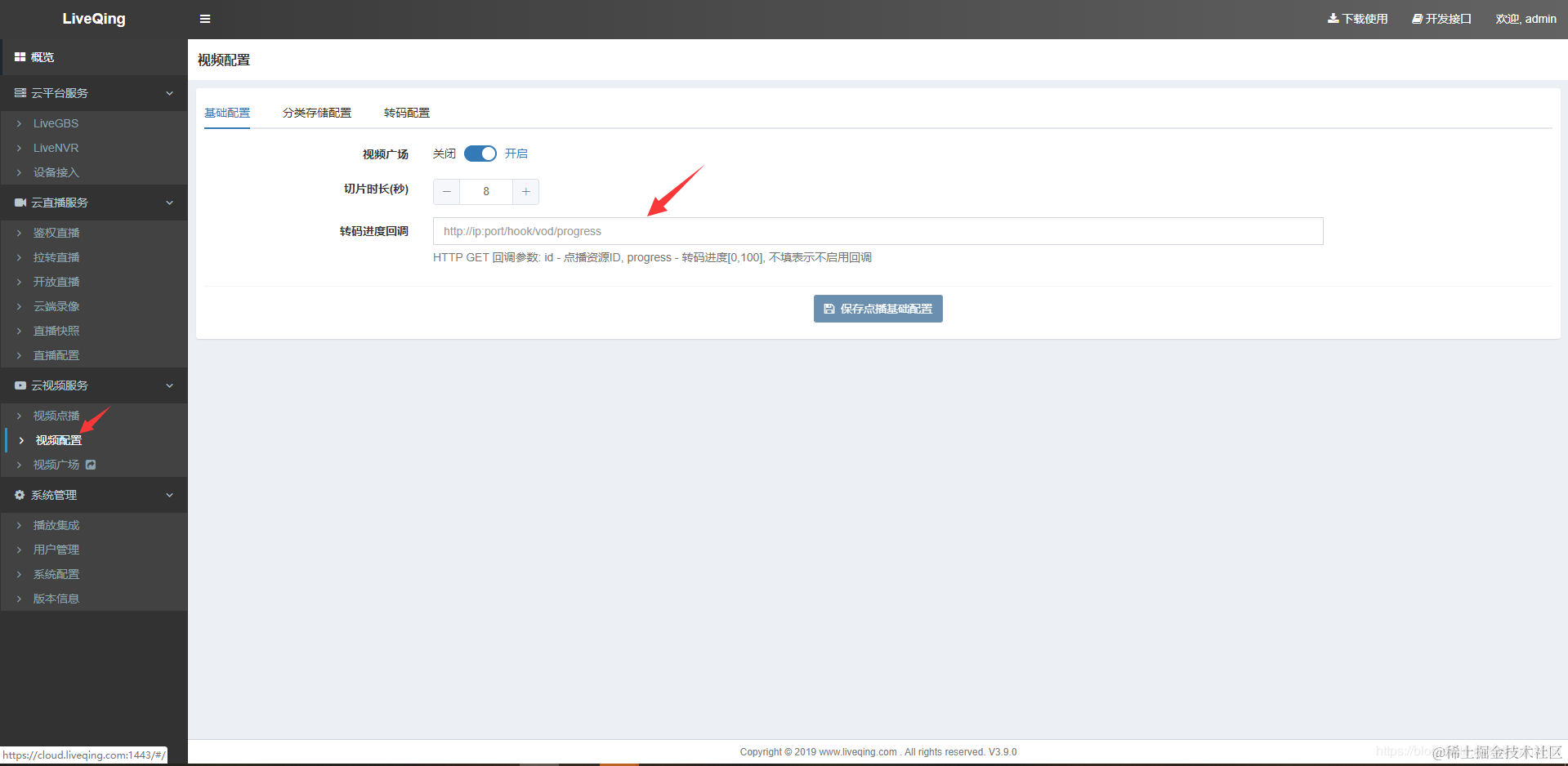 云视频服务-视频配置-基础配置