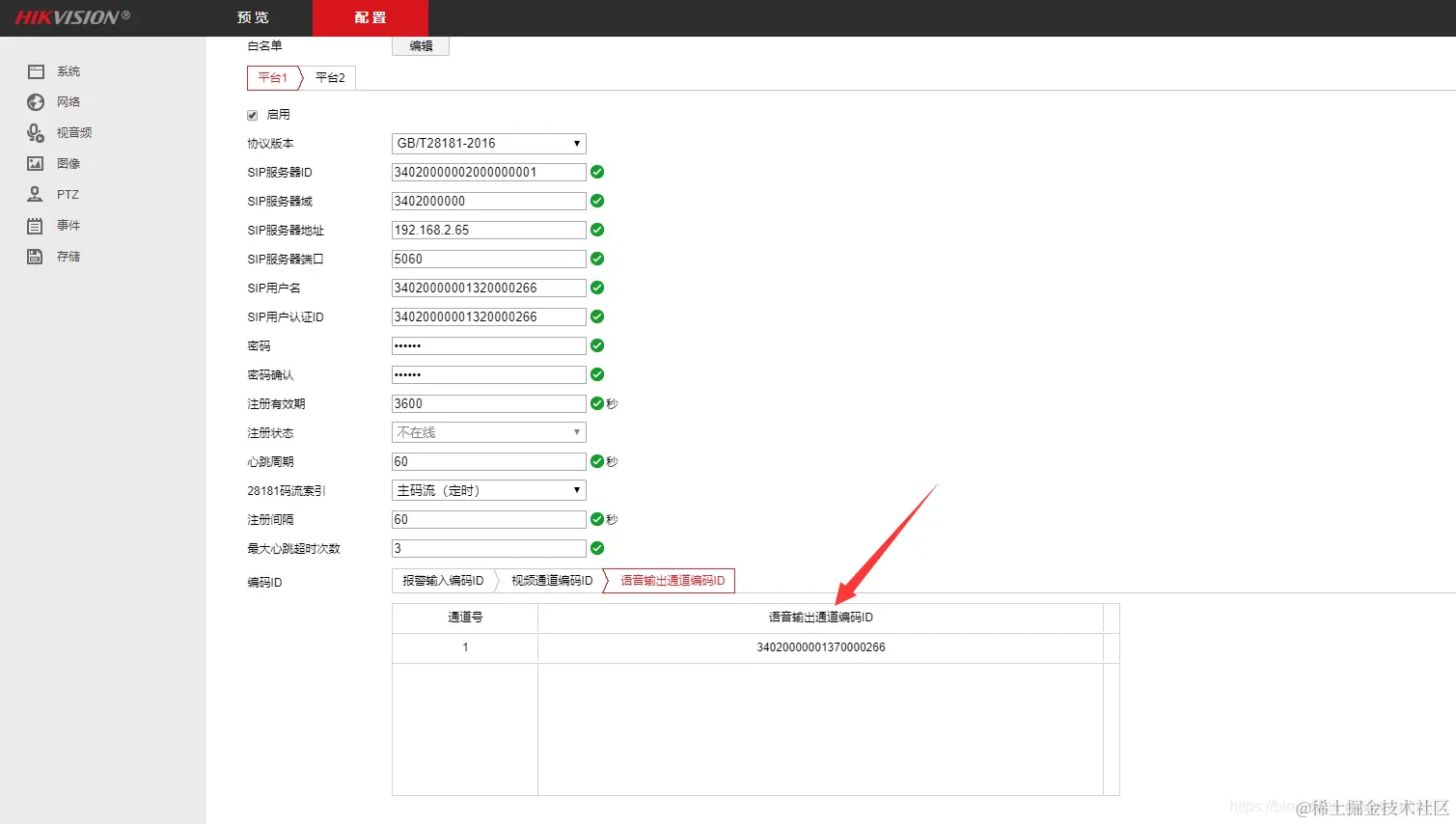 配置语音输出通道编码
