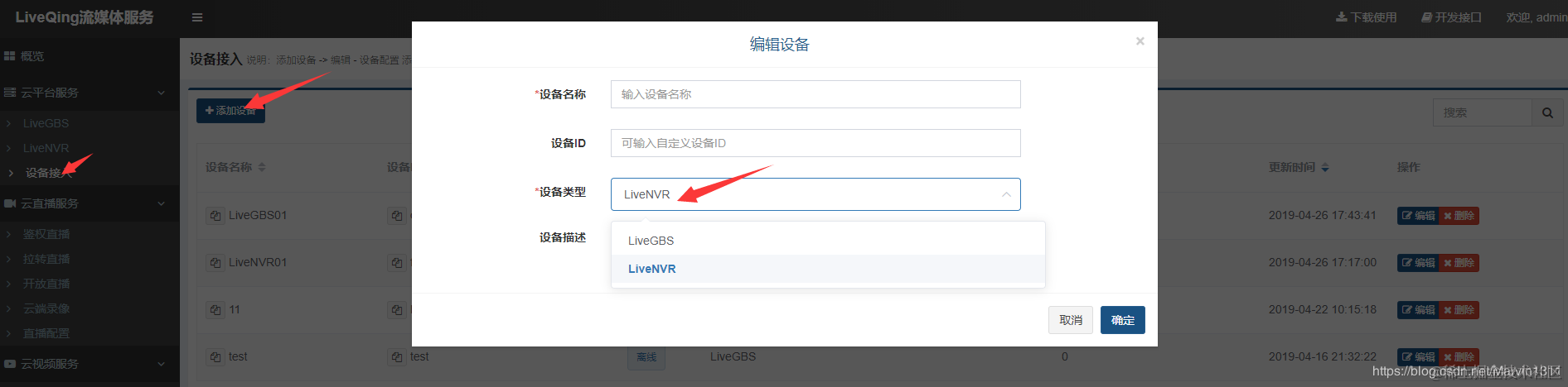 添加一个LiveNVR类型的设备接入