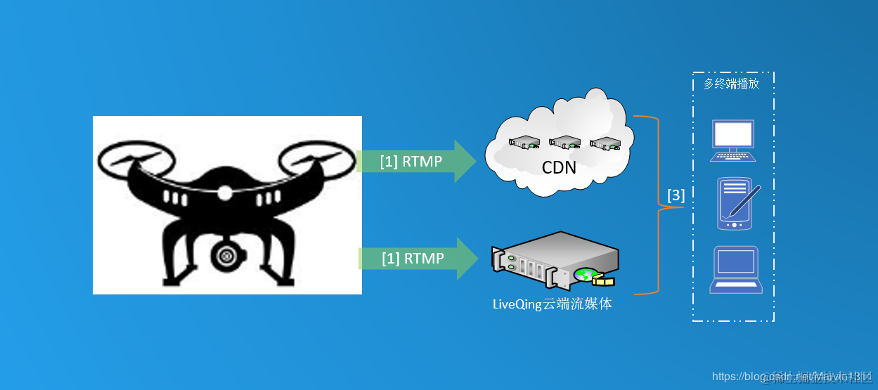 如果无人机自身支持RTMP推流,可以直接采用RTMP直接推流的方式