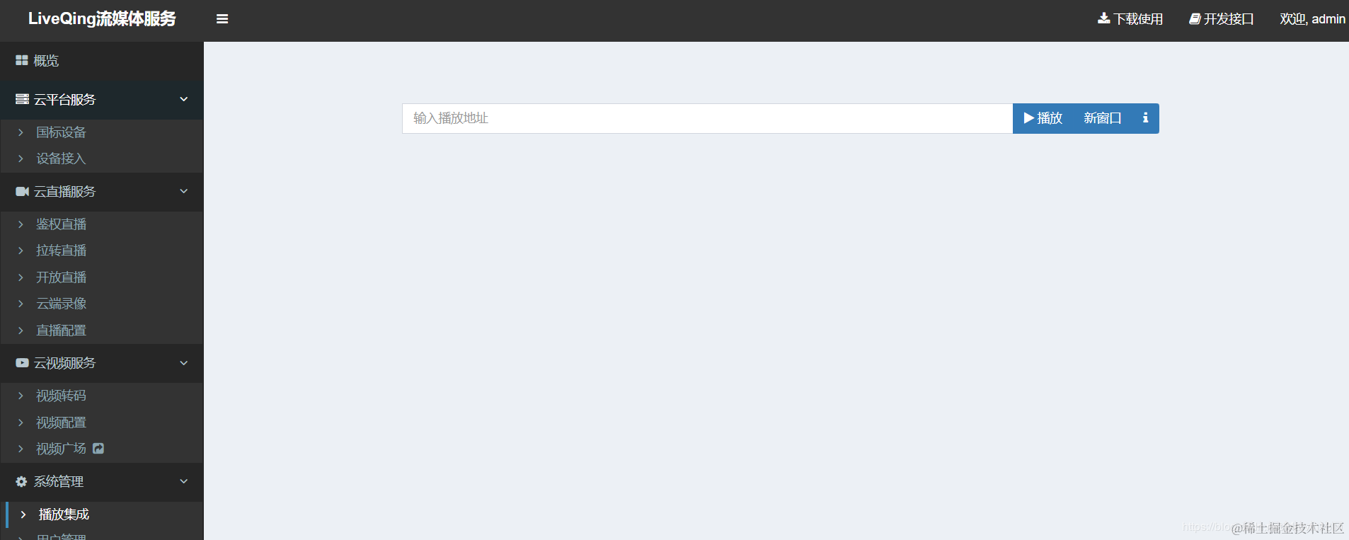 LiveQing云端直播点播流媒体软件: 提供设备接入; RTMP推流服务、RTMP分发、HLS分发、HTTP-FLV分发; 云端录像、云端录像检索、云端录像点播、云端录像下载; RTMP转推、推流鉴权验证、推流信息统计、播放信息统计; 直播分享、开放直播、拉转直播; 视频上传、视频转码、视频分享、视频下载; 后台管理、二次开发接口、防盗链、播放地址加密、播放器集成等。